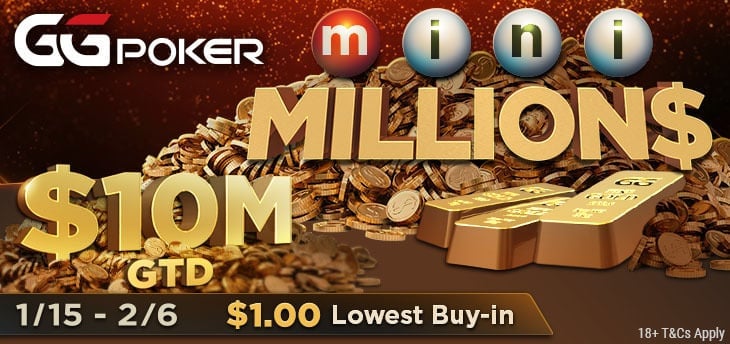GGPoker ogłosiło dzisiaj szczegóły najnowszej edycji mini MILLION$, która potrwa od 15 stycznia do 6 lutego. Gwarantowana pula nagród w tym festiwalu wyniesie aż $10,000,000, co oznacza, że podwajamy tę kwotę w stosunku do pierwszej edycji mini MILLION$ rozegranej w październiku.