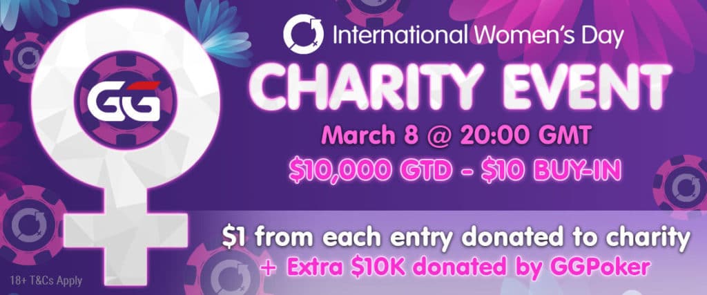 Turniej charytatywny z okazji Międzynarodowego Dnia Kobiet odbędzie się o 20:0 UTC w dniu 8 marca, z wpisowym $10 i pulą gwarantowaną $10,000. Z każdego wpisowego $1 zostanie przekazane na cele charytatywne. GGPoker uzupełni zebraną kwotę, dodając od siebie $10,000.